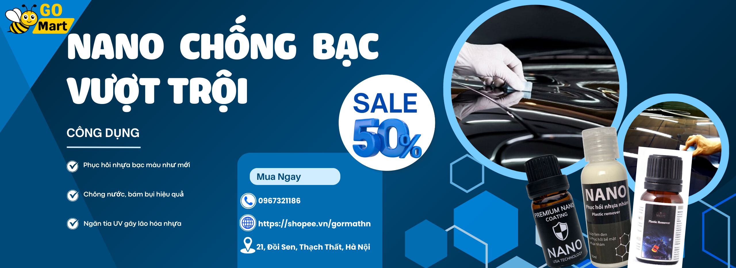 Dung dịch phục hồi nhựa nhám Nano USA 10ml làm đen nhựa ô tô xe máy, giữ màu Go Mart
